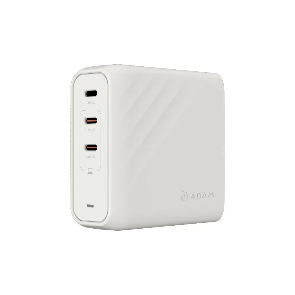 The Adam Elements OMNIA Pro 140 is a travel-ready, high-output GaN charger that delivers up to 140 W from a single USB-C port, fast-charging even the 16-inch MacBook Pro from 0 to 50% in around 30 minutes. Its ergonomic, wave-textured design packs three USB-C PD 3.1/PPS ports for powering multiple laptops or devices at once—two laptops can share a 65 W + 65 W split, while a third device gets 20 W. Includes universal travel plugs (US, UK, EU, AU) and a 200 cm USB-C PD 3.1 cable, all with advanced safety features for worldwide convenience in a compact design.