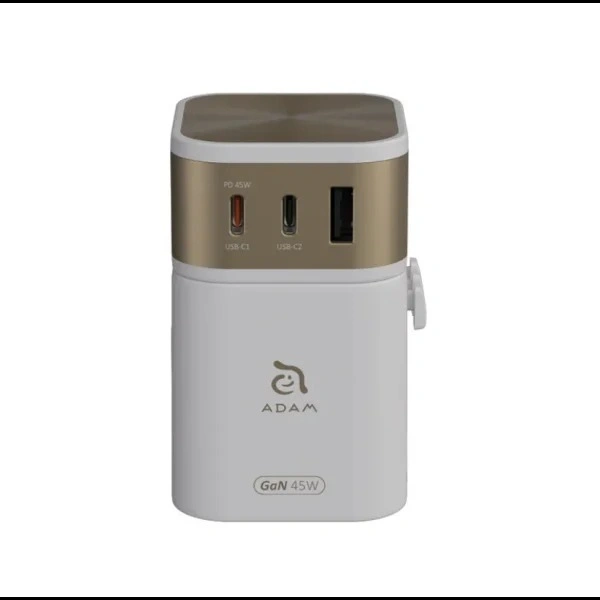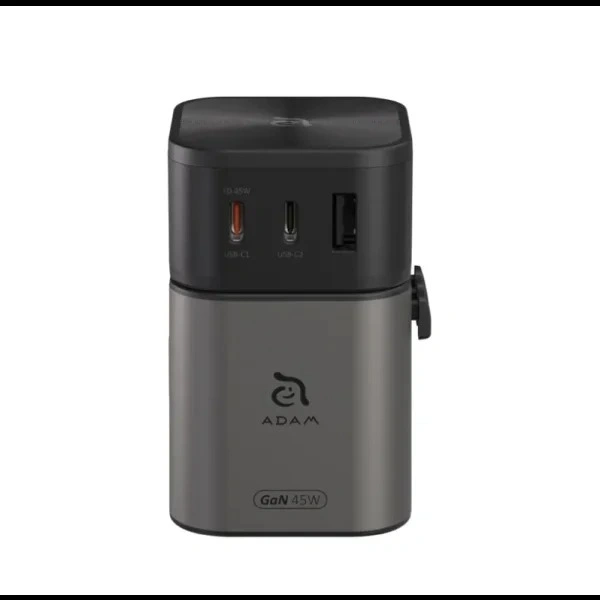 The Adam Elements OMNIA T45 is a compact universal travel adapter designed for globetrotters who need reliable charging anywhere in the world. Supporting over 150 countries with interchangeable plugs (US, UK, EU, AU), it combines versatility with powerful performance. The built-in 45W USB-C Power Delivery port can fast-charge laptops, tablets, and smartphones, while additional USB-A ports let you charge multiple devices at once. With safety features like overcurrent, overvoltage, and surge protection, the OMNIA T45 ensures safe and stable charging. Lightweight and portable, it’s the perfect all-in-one solution for business travelers, tourists, and digital nomads.