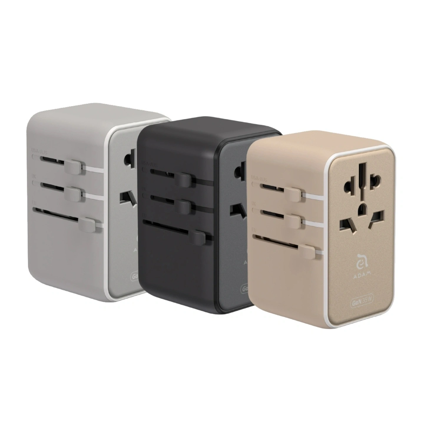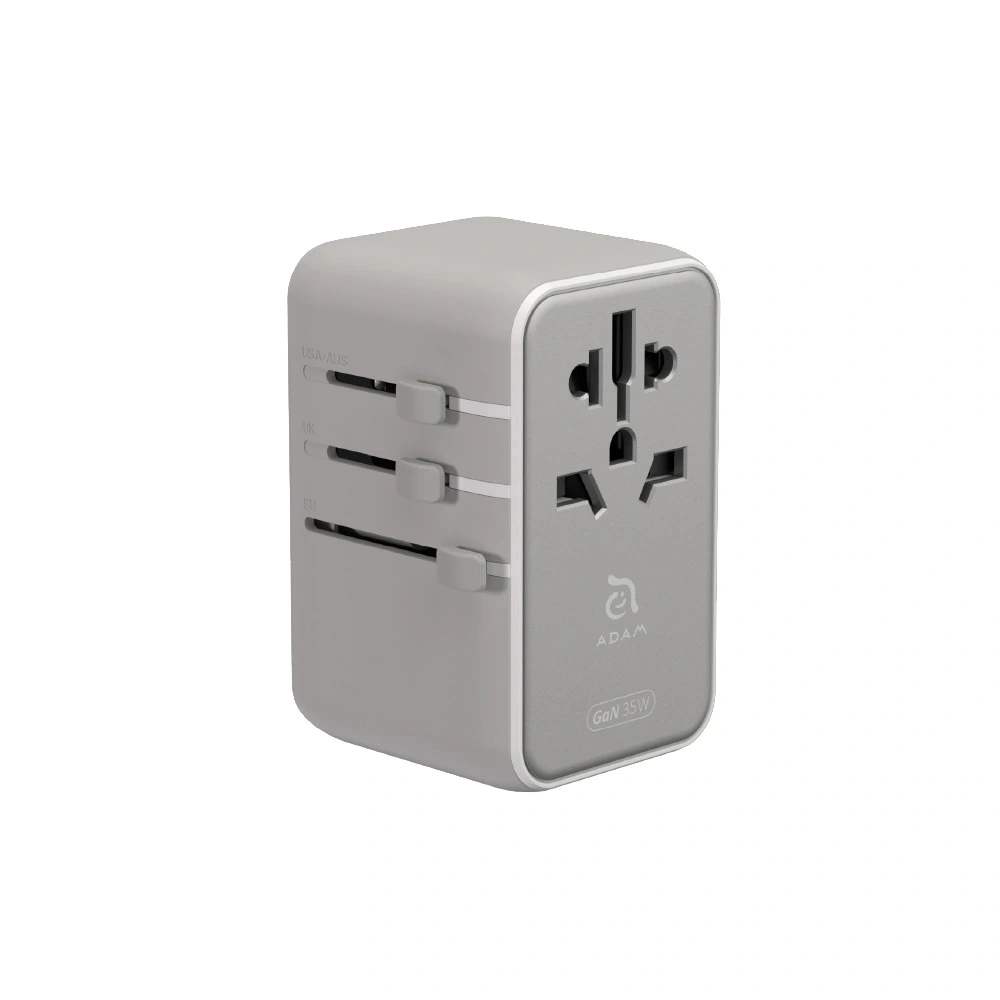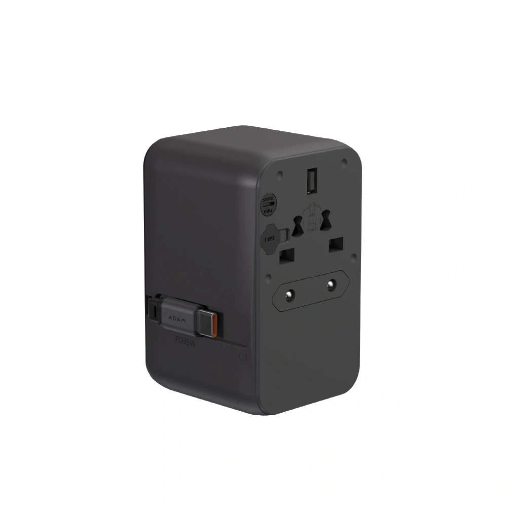 The ADAM Elements T35L is a compact universal travel adapter designed for convenient charging anywhere in the world. Supporting over 150 countries with US/UK/EU/AU plug standards, it features a built-in retractable 70cm USB-C cable, dual USB-C ports, and dual USB-A ports, allowing you to charge multiple devices simultaneously. Powered by GaN technology, it delivers efficient 35W fast charging, making it ideal for smartphones, tablets, earbuds, power banks, cameras, and other USB-powered devices. Lightweight, durable, and travel-ready, it’s the perfect charging companion for global travelers.