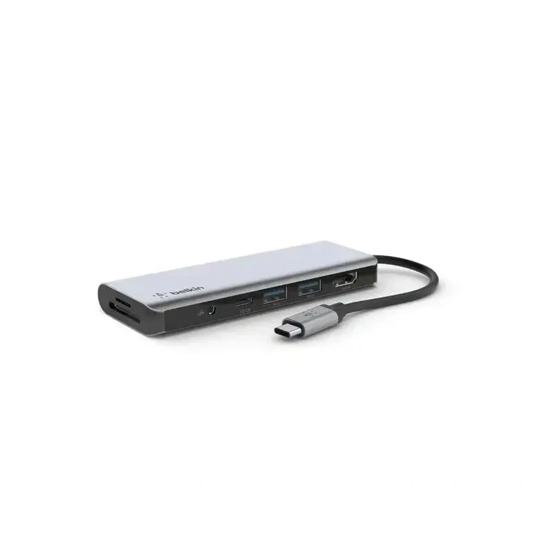 The Belkin 7‑in‑1 USB‑C adapter (model AVC009btSGY) is a versatile multiport hub designed to expand the connectivity of modern USB‑C devices. With a single USB‑C connection you get HDMI output (supporting up to 4K resolution), pass‑through charging up to 100 W, two USB‑A ports for peripherals, plus SD and MicroSD card slots for media or file transfer. Its compact and travel‑ready design makes it a perfect companion for laptops, tablets, or any USB‑C device — whether you’re working in the office, travelling, or giving presentations. Plug and play convenience ensures you can connect monitors, storage devices, flash drives, and more without needing extra software, simplifying setup while maximizing functionality.