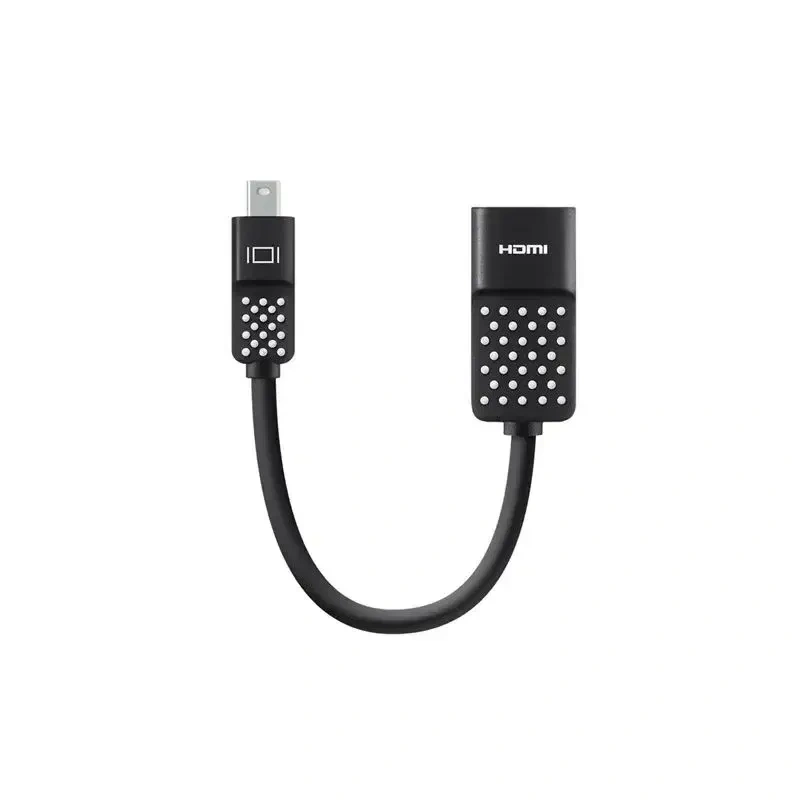 The Belkin Mini DisplayPort to HDMI Adapter 4K (F2CD079BT) is a compact and reliable solution to bridge devices with a Mini DisplayPort or Thunderbolt output (such as MacBook, MacBook Air/Pro, Surface Pro, and many ultrabooks/tablets) to displays with HDMI input — HDTVs, monitors, projectors, etc.