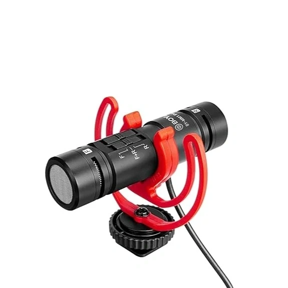 The Boya BY-MM1 Pro is a compact, dual-capsule shotgun mic that delivers professional-grade audio while offering unmatched flexibility. With two super-cardioid condenser elements—one facing forward and the other rear—it lets you record dialogue and interviews without moving the mic, switching between front-only, rear-only, or combined modes. A handy switch toggles between camera (TRS) and smartphone (TRRS) inputs using a single cable. Lightweight yet durable, it mounts securely to your camera’s hot shoe, operates without batteries, and is ideal for vloggers, filmmakers, and content creators seeking clear, directional sound in a portable package.