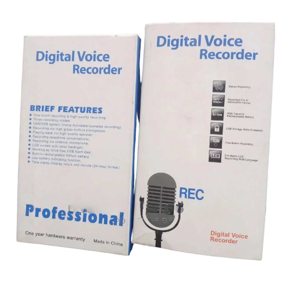 Capture clear audio anytime with this Digital Voice Recorder—ideal for lectures, meetings, interviews or notes. It features voice-activated recording, multiple format support (MP3/WAV), built-in microphone and USB charging/data transfer. Portable and lightweight, with LCD display for tracking recording time and battery status. Comes with internal memory (or supports external memory) to store hours of recordings. Available now at Rozai Store, Chabahil, Kathmandu, or order online for fast delivery across Nepal. Record with confidence, wherever you are—only at Rozai.