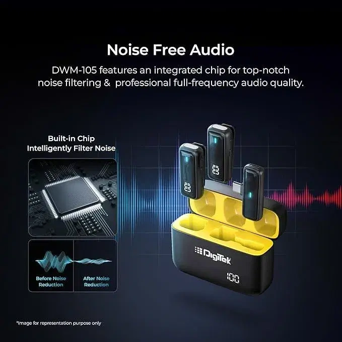 Digitekยฎ (DWM 105) 2 in 1 Wireless Microphone System with ANC Mode, 50m Wireless Range, 6-Hour Working Time, Plug & Play Auto Pairing, Compatible with Android & iOS for Broadcasting & Audio Recording.