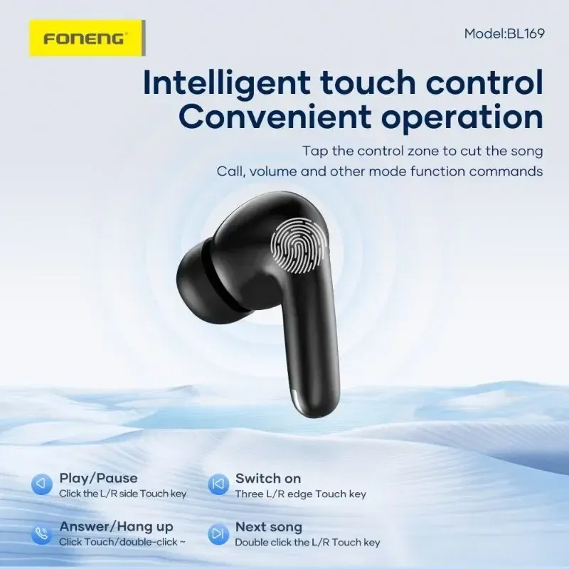 The Foneng BL169 ANC+ENC Noise Canceling TWS Earphone delivers premium true‑wireless audio with advanced noise control technologies. Featuring both Active Noise Cancellation (ANC) and Environmental Noise Cancellation (ENC), these earbuds block ambient distractions while enhancing call clarity, making them perfect for commuting, workouts, or busy environments. Built with Bluetooth 5.4 and support for multiple audio protocols, they ensure a swift, stable connection to your smartphone or device up to 12 meters away. Enjoy up to 6 hours of music playback on a single charge, with extended standby support up to 35 hours when using the included charging case. The ergonomic in‑ear design with 13 mm drivers produces deep bass and crisp highs for immersive sound. The charging case features a modern Type‑C port for quick power refresh in approximately 1.5 hours. Available in sleek black or white, the Foneng BL169 offers comfort, style, and performance for everyday listening.