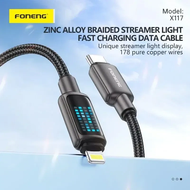 The FONENG X117 1.2M Flowing Light Zinc Alloy Head Braided Cable is a high-performance charging and data cable designed for users who want speed, durability, and style. Featuring a premium braided nylon exterior and robust zinc alloy connector heads, this cable stands up to daily wear and tear while offering a sleek and modern aesthetic. The unique flowing LED light effect adds visual flair and makes it easy to locate in low-light conditions. With PD30W fast charging support, the X117 delivers efficient power to your iOS devices, ensuring quick and reliable charging. The cable’s high-quality copper conductors and thickened build boost stability and lifespan, making it an ideal accessory for smartphones, tablets, and other compatible devices. Whether at home, the office, or on the go, the Foneng X117 cable combines performance and design for an exceptional user experience.