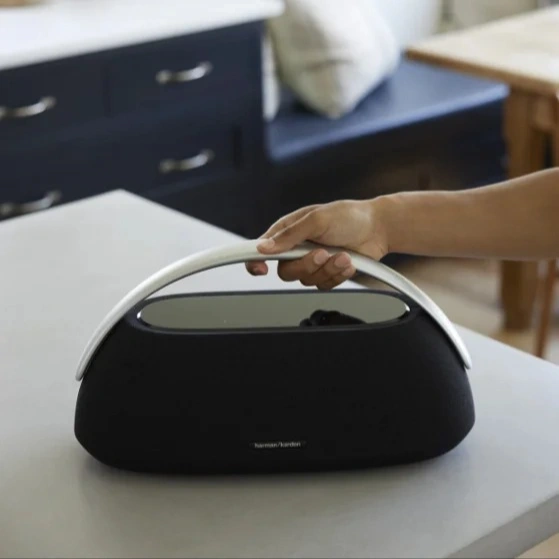 The Harman Kardon Go + Play 3 is a refined wireless speaker that blends premium design with powerful, nuanced audio. With its sleek, boombox-style build and convenient aluminum handle, it delivers room-filling stereo sound wherever you go. The three-way speaker system includes a down-firing subwoofer, delivering punchy bass, while the midrange and treble offer detailed and accurate vocal and instrument reproduction. Boasting up to 8 hours of battery life and Bluetooth connectivity, it’s the ideal companion for home use, road trips, and relaxed gatherings.