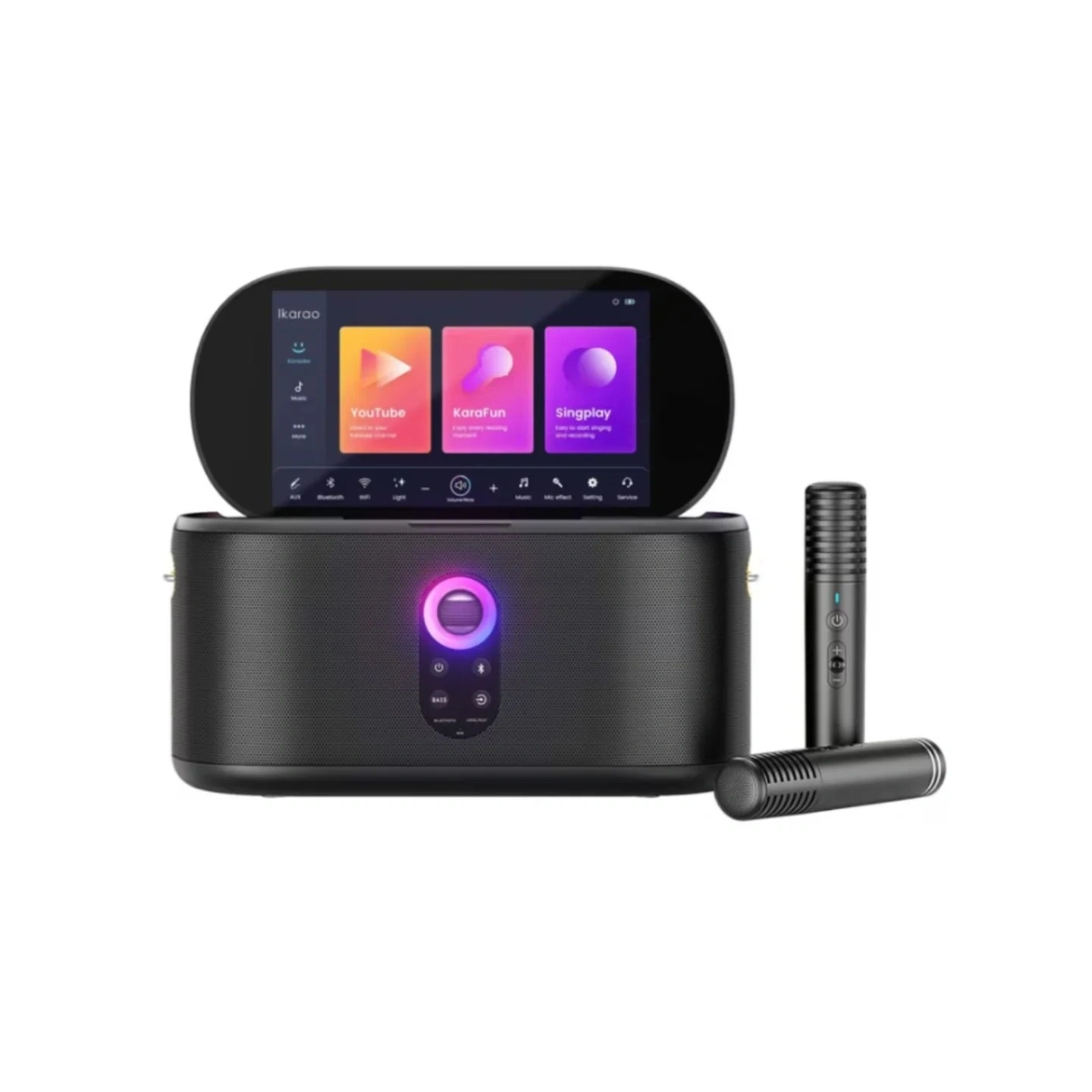 The iKarao Shell S1 is a stylish and portable karaoke machine designed for easy, fun entertainment at home or on the go. Featuring a 7-inch HD touchscreen, two self-charging wireless microphones, and powerful audio output, it delivers a complete karaoke experience in a smaller, more compact form. With seamless app integration, multiple connectivity options, and up to 6 hours of battery life, the Shell S1 is perfect for family gatherings, parties, and casual sing-alongs anywhere.