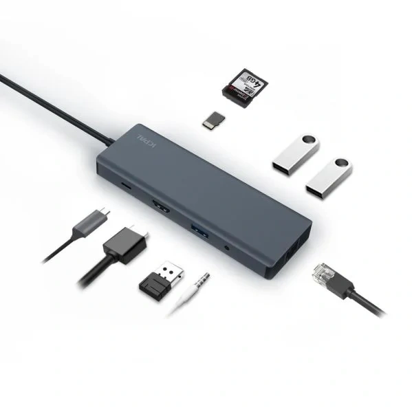 The JCPAL Linx USB-C 9-Port Hub is a premium multiport solution designed to expand your laptop or tablet connectivity with ease. With nine versatile ports, including a high-definition HDMI output supporting up to 5K or 4K @ 60Hz, this hub lets you mirror or extend your display to larger screens for enhanced productivity or entertainment. It features three high-speed USB 3.1 Gen 1 ports for fast data transfers, a Gigabit Ethernet port for reliable wired network access, and convenient SD and microSD card readers for quick access to your photos and files. The built-in USB-C PD power delivery up to 60W keeps your device charged during use, while the 3.5mm audio port supports headphones or speakers. Crafted with a durable aluminum shell, the JCPAL Linx hub is both stylish and robust, making it perfect for professionals, students, and creative users who need more connectivity on the go.