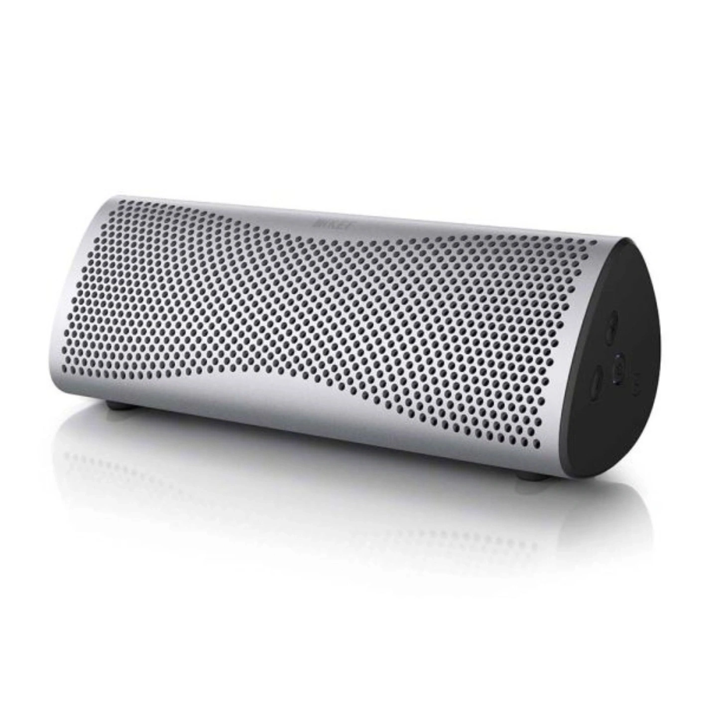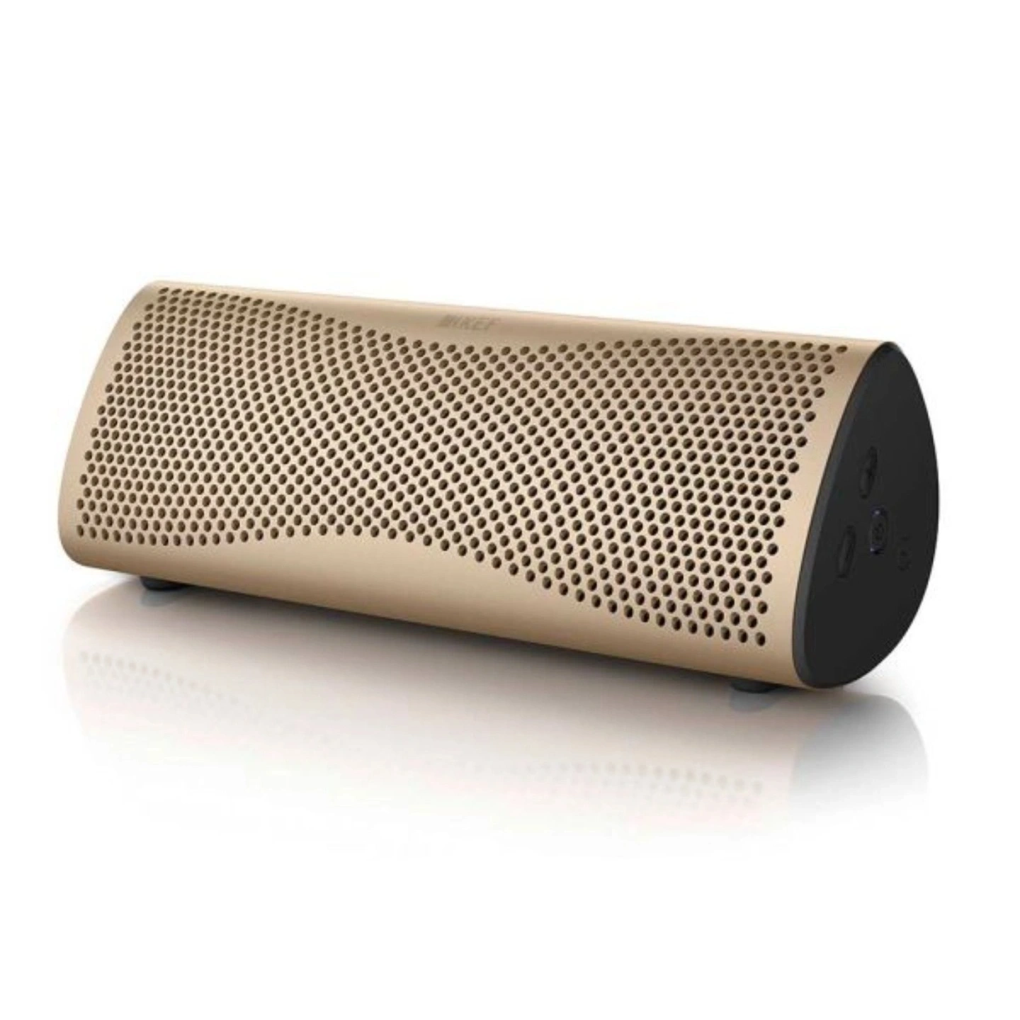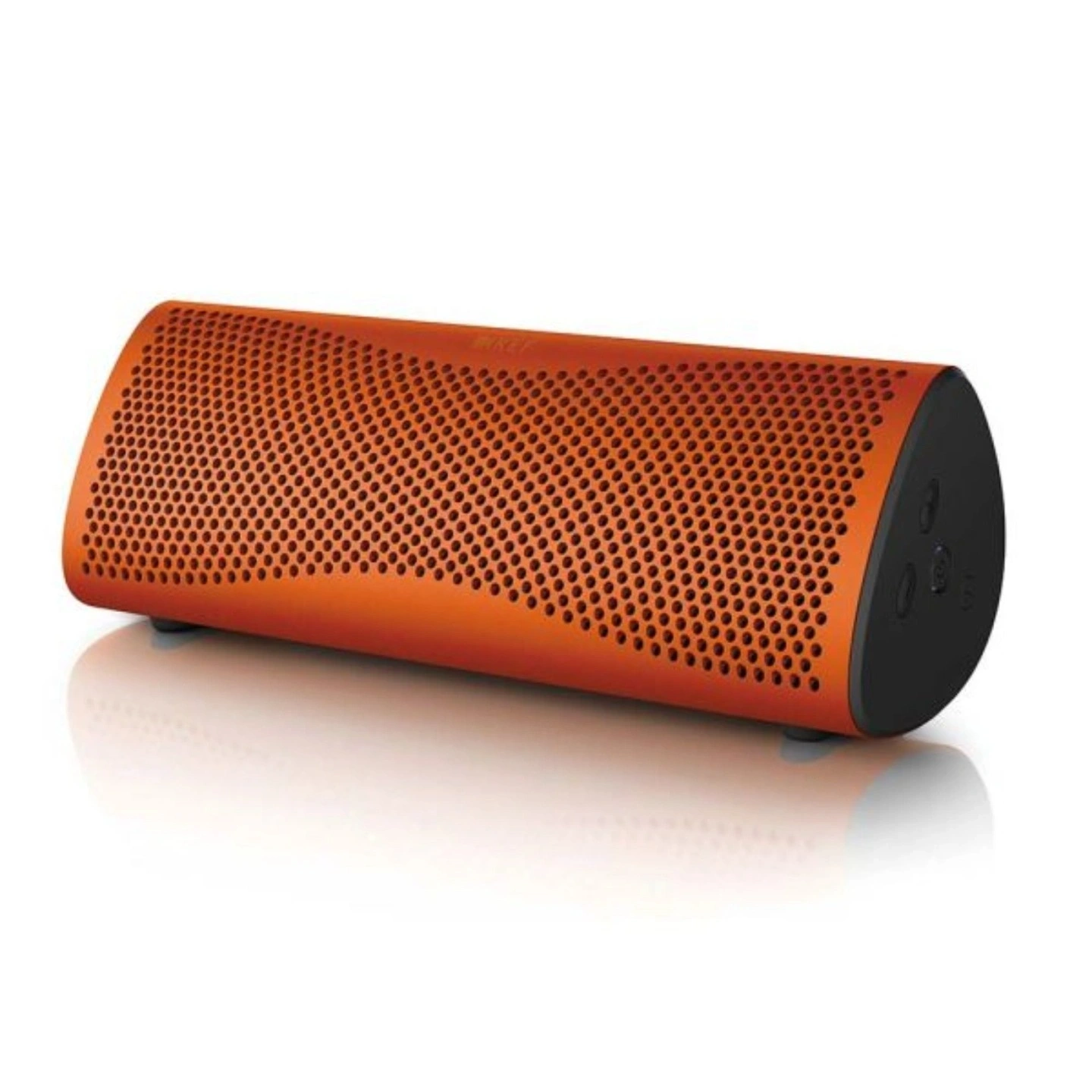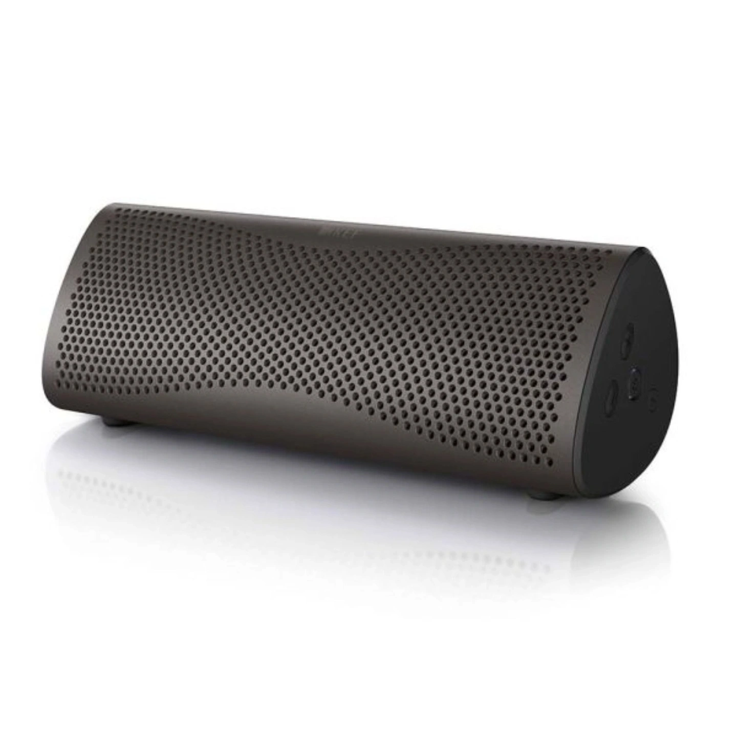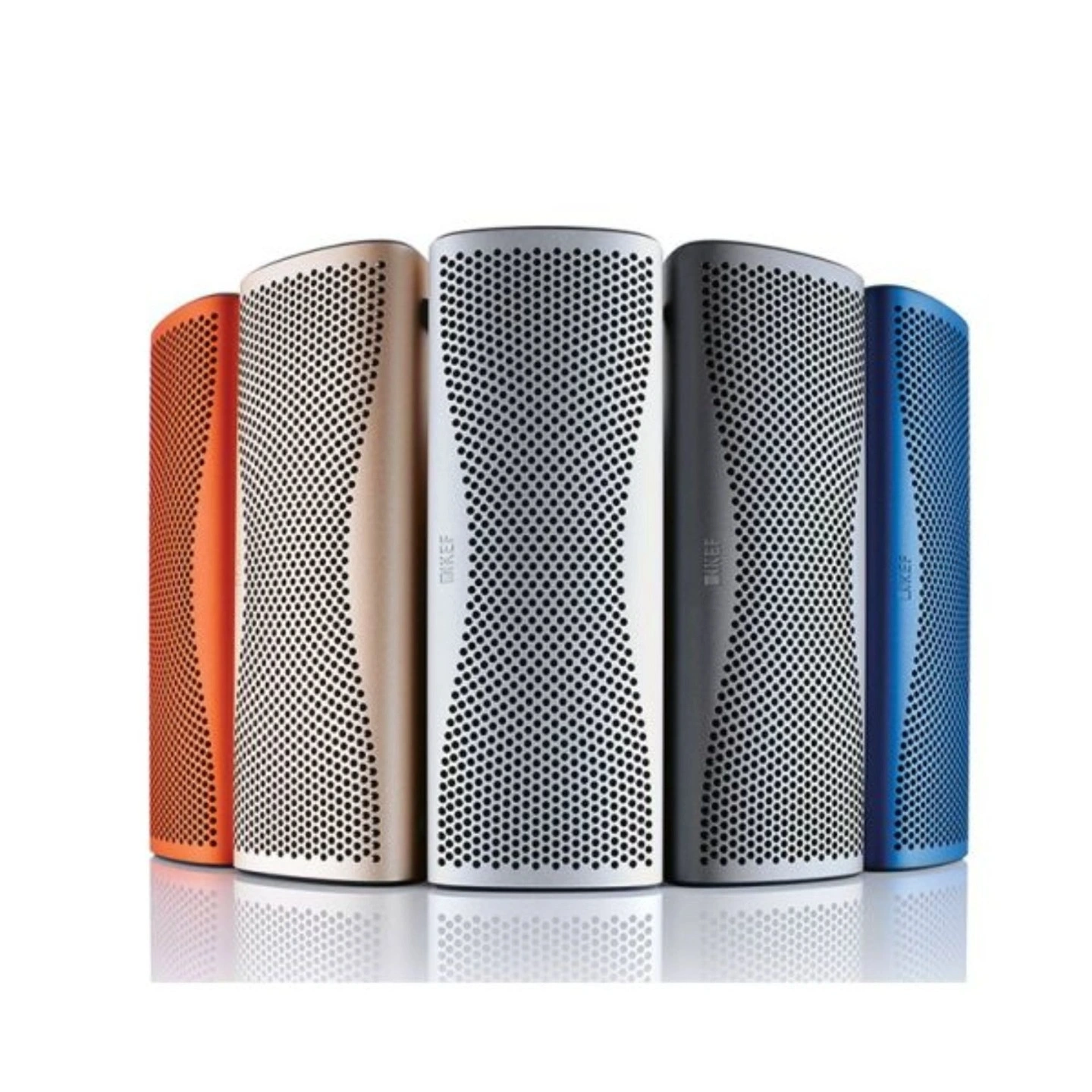 The KEF MUO is a premium portable Bluetooth speaker designed in collaboration with Ross Lovegrove. Despite its compact size, it houses dual 50 mm Uni‑Q drivers and an auxiliary bass radiator for remarkably detailed, full-spectrum sound. The sculpted aluminum enclosure minimizes vibration while a built-in sensor optimizes sound for upright or horizontal placement. With Bluetooth 4.0 and aptX codec, NFC pairing, and a 3.5 mm aux input, MUO adapts to various devices. A rechargeable battery delivers around 12 hours of playback, and its rugged build and elegant shape make it perfect for desktop use, travel, or small gatherings.