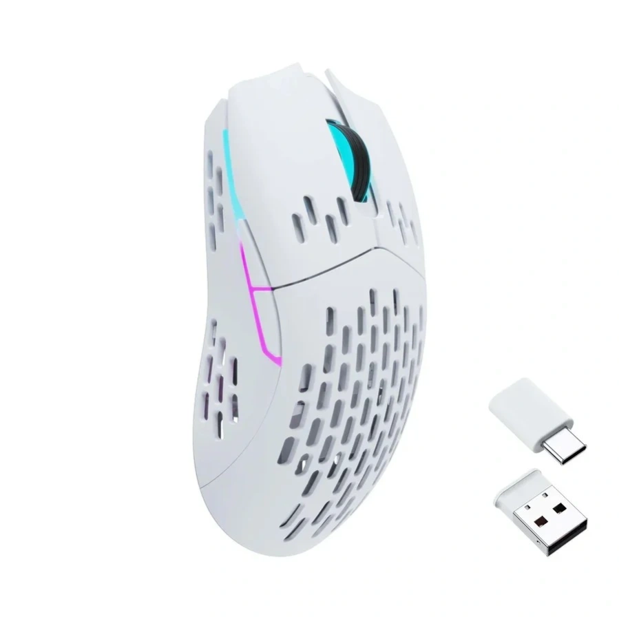 The Keychron M1 Wireless Mouse is a high-performance wireless mouse designed for both productivity and gaming. Built around the powerful PixArt PAW3395 sensor, it offers adjustable DPI up to 26,000 for highly accurate tracking and ultra-responsive control across various tasks. Its tri-mode connectivity (Bluetooth 5.1, 2.4 GHz wireless, and USB-C wired) gives you flexibility whether you’re working, gaming, or streaming on the go. The ergonomic curved design with textured side grip ensures comfort even during long use, while the lightweight body (~79 g) minimizes hand fatigue. With up to 70 hours of battery life and fully customizable 16.8 million color RGB lighting, the M1 makes personalization and long sessions effortless. It also includes both Type-C and Type-A 2.4 GHz receivers in the box for seamless plug-and-play connectivity and features durable Kailh GM 8.0 micro switches rated for up to 80 million clicks, ensuring durability and excellent tactile feedback.