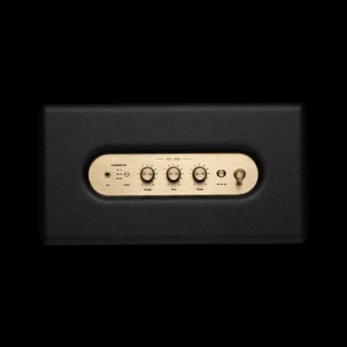 • Design: Classic Marshall look with a textured finish, brass knobs, and iconic logo.