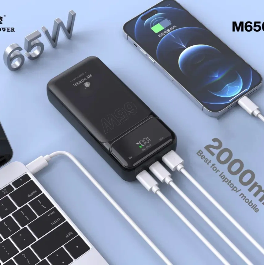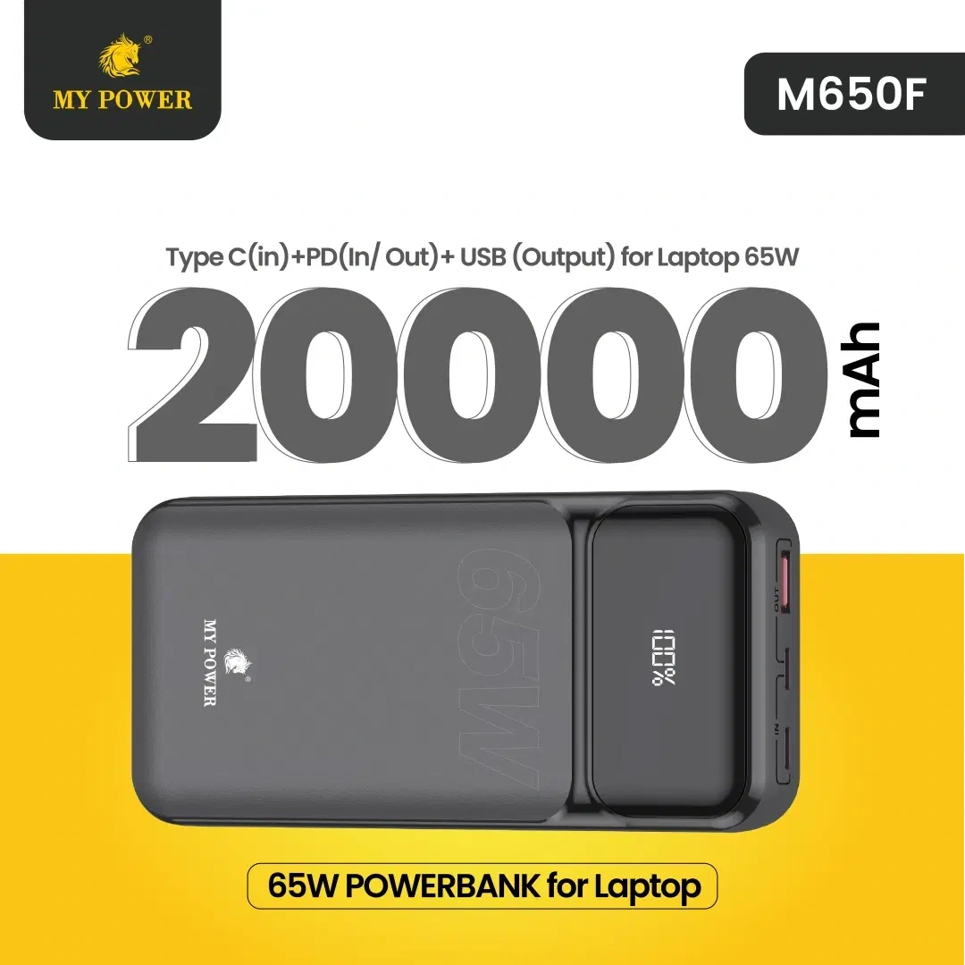 The My Power Powerbank M650F (20000mAh) is a versatile and powerful portable charger designed for modern users who need reliable power on the go. With its high-capacity Li-Polymer battery and 65W fast charging capability, it can efficiently power laptops, tablets, and smartphones with ease. Dual Type-C ports allow both input and output functions, providing flexible charging options for multiple devices. The LED digital display offers accurate battery status, while the robust ABS casing ensures durability for daily use. Safety certifications including FCC, CE, and ROHS confirm dependable performance. Whether you're traveling, working remotely, or navigating a busy day, this power bank delivers dependable power with rapid recharge times, making it an essential accessory for all your charging needs.