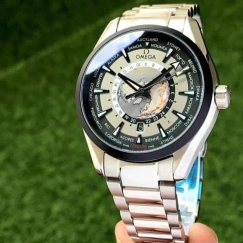 The Omega Seamaster Aqua Terra Worldtimer is a true masterpiece of watchmaking, combining elegance, innovation, and global functionality. Designed for travelers and connoisseurs, it features a stunning world map dial surrounded by the names of major cities, allowing effortless tracking of multiple time zones. Crafted from premium stainless steel, it boasts a polished finish, sapphire crystal glass, and a transparent case back showcasing the intricate automatic movement. The watch ensures water resistance, durability, and unparalleled accuracy, making it a perfect blend of luxury style and high performance for those who appreciate precision and sophistication.