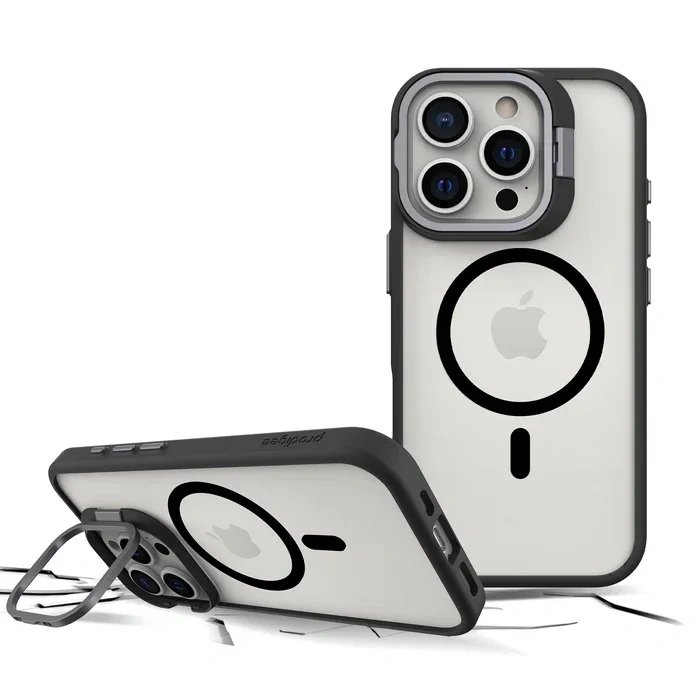 The Prodigee Kickit case for iPhone 16 Series is a sleek and functional protective case engineered to elevate your smartphone experience. Combining robust daily protection with modern convenience, it features a built‑in kickstand that supports both portrait and landscape viewing—perfect for video calls, streaming, or typing hands‑free. Integrated magnets make it MagSafe compatible, enabling secure attachment to MagSafe chargers and accessories without removing the case. The dual‑layer construction integrates a shock‑absorbing TPU core with a rigid outer shell to defend against drops and impacts, while raised bezels safeguard the screen and camera edges. Finished with a matte texture, this case offers premium grip and style without adding bulk, keeping your iPhone 16 Series slim and pocket‑ready.